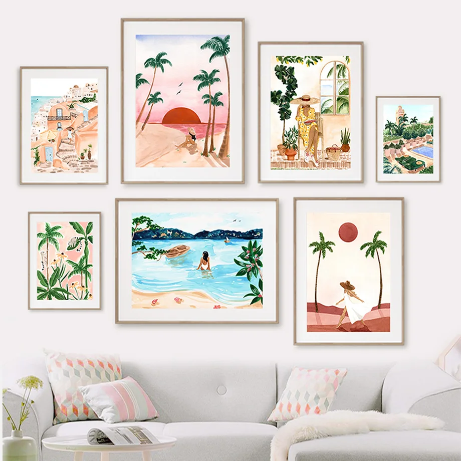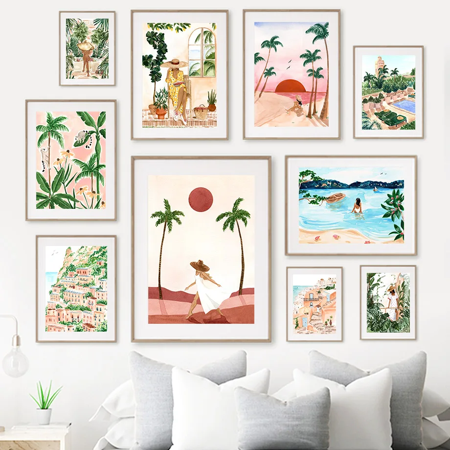 Итальянское побережье закат пляж Лемур Марокканская девушка настенная живопись гостиная украшение живопись плакаты и принты