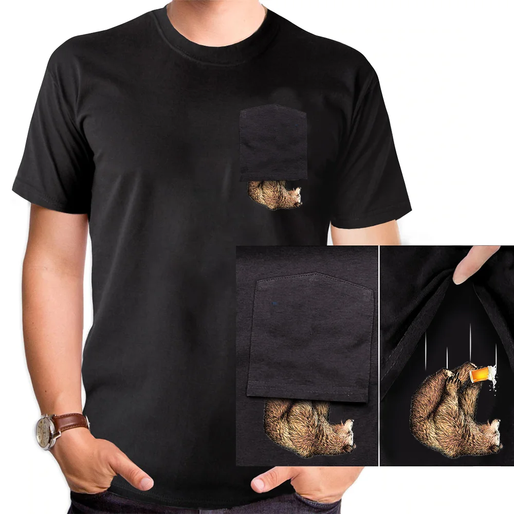 Забавная футболка, модная брендовая летняя футболка с карманом для ...