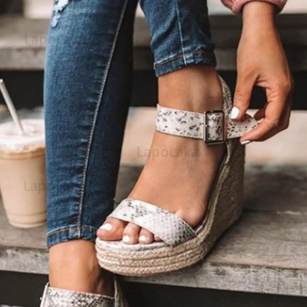 Lapolakaбосоножки на танкетке Босоножки на платформе с ремешком на щиколотке; Летняя удобная женская обувь для отдыха; Размера плюс 34-43