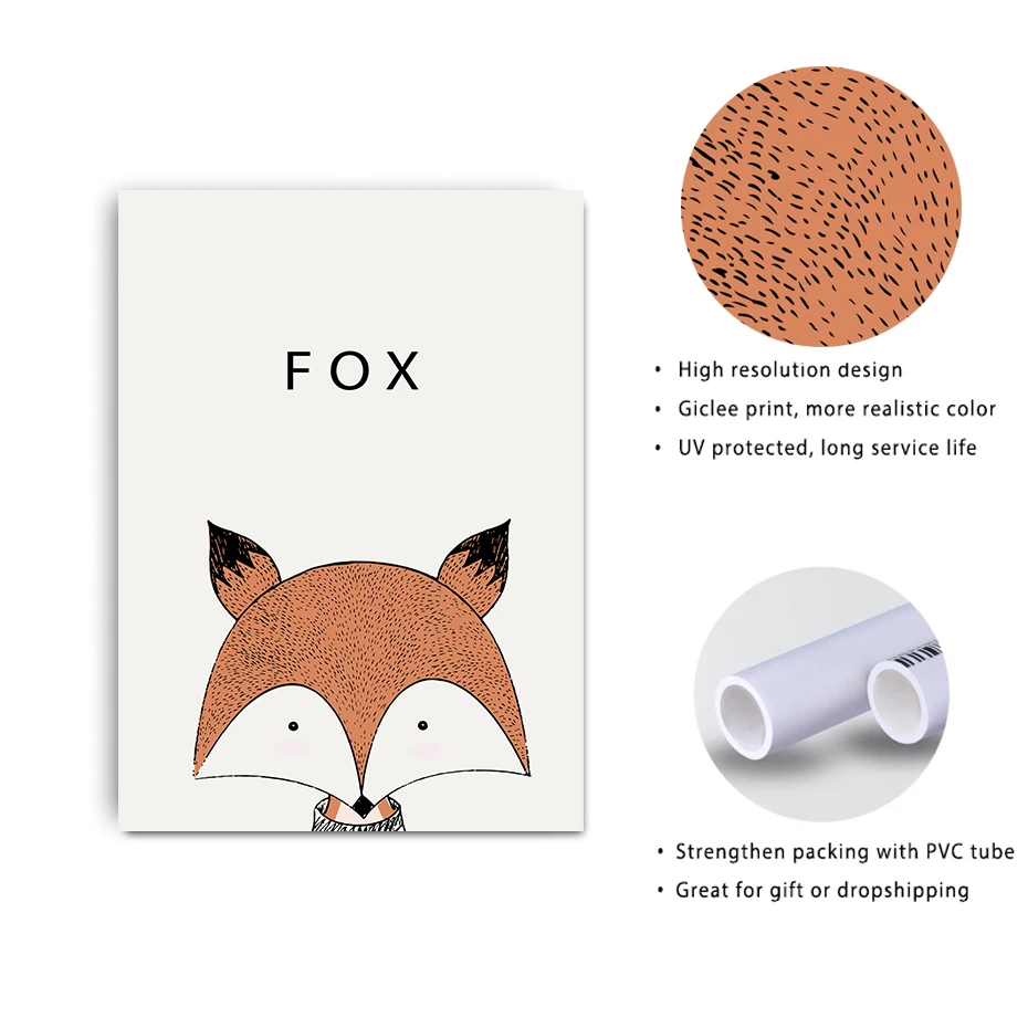 Детские картины на холсте животные из мультфильмов лиса медведя для малышей Картины печать плакатов, подарок на день рождения, рисунки в виде Винни Пуха для детской комнаты, декоративные
