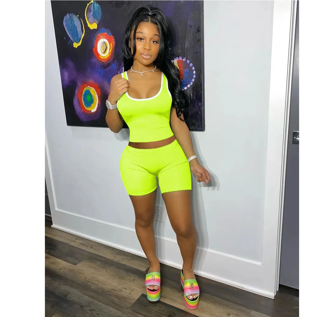 Женский комплект из двух предметов, жилет без рукавов, топ, эластичные шорты, спортивный костюм, повседневный короткий топ, велосипедные шорты, женские шорты из 2 предметов