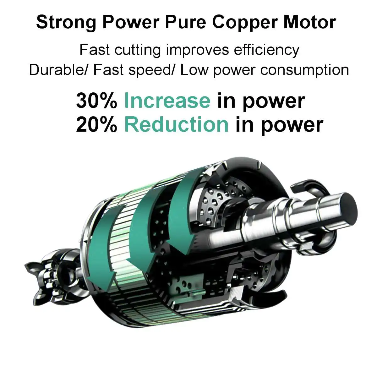 Особенности:-Легкий и портативный, можно держать одной рукой, не уставать даже долгое время использования.-Двигатель из чистой меди, высокая мощность, быстрая и гладкая резка, высокая эффективность.-Высококачественная направляющая цепь, глубокая закалка, более износостойкая, гладкая резка.-Интеллектуальная плата управления цепью, защита от перегрузки, низкое энергопотребление.-Двигатель из чистой меди, сильная мощность, быстрая резка, повышение эффективности.-Практичная, быстрая скорость, низкое энергопотребление.-Специальная направляющая пластина, шарик из вольфрамовой стали не нужно смазывать, так что машина уменьшает сопротивление во время работы и уменьшает износ на машине.