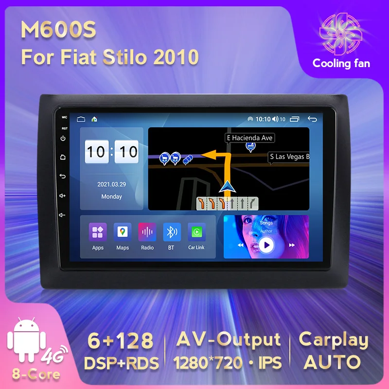 Автомобильный мультимедийный плеер 4G LTE, GPS-навигатор, автомобильный Радио, стерео плеер, для Fiat Stilo 2010 SWC, RDS, IPS, DSP, 6 ГБ + 128 Гб, встроенный Carplay