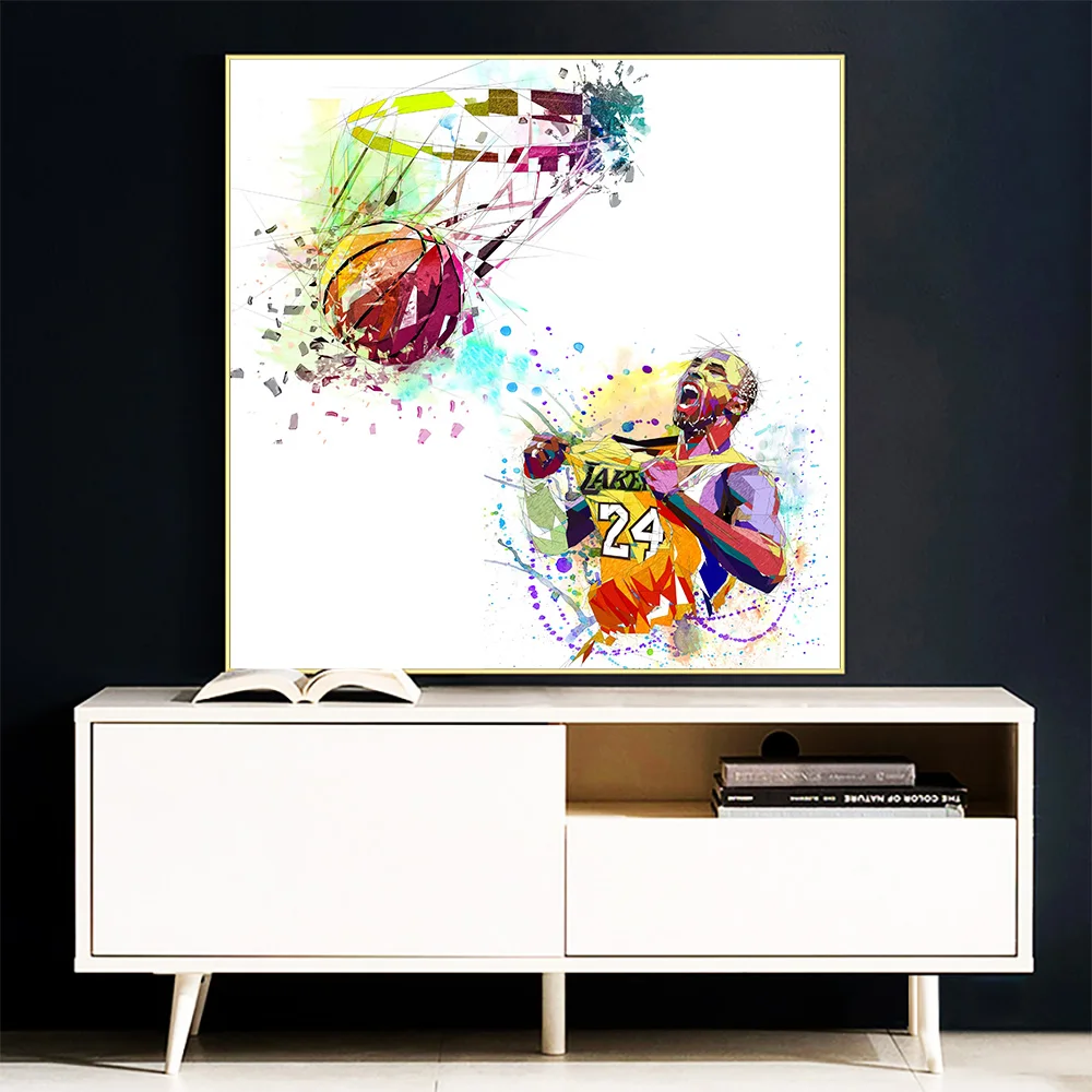 Акварельный баскетбольный обруч, Картина на холсте Коби, настенное искусство, баскетбол, плакаты "Игроки" и принты, картина для домашнего декора стен