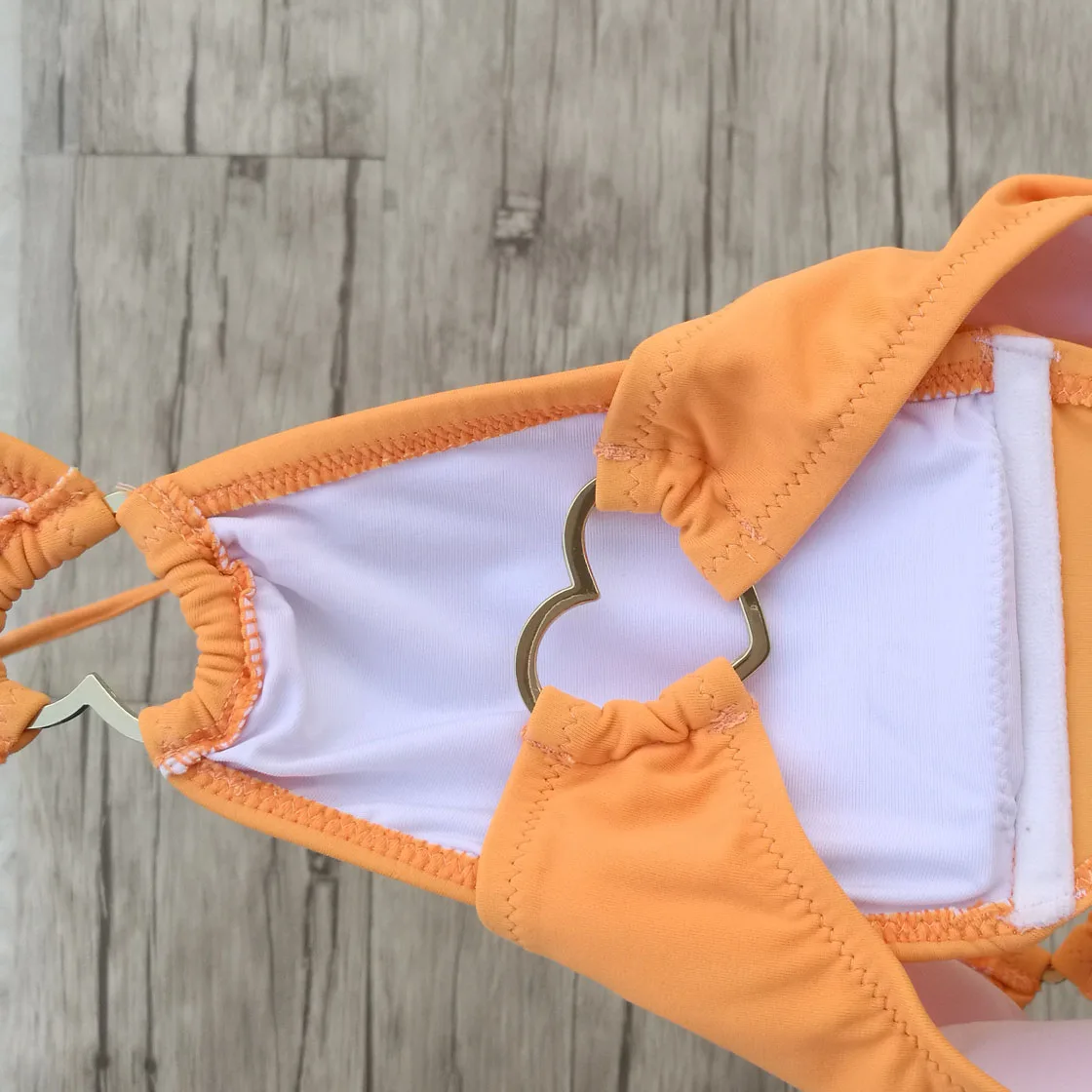 Женский оранжевый комплект бикини в форме сердца, купальник, бикини, купальный костюм для девушек