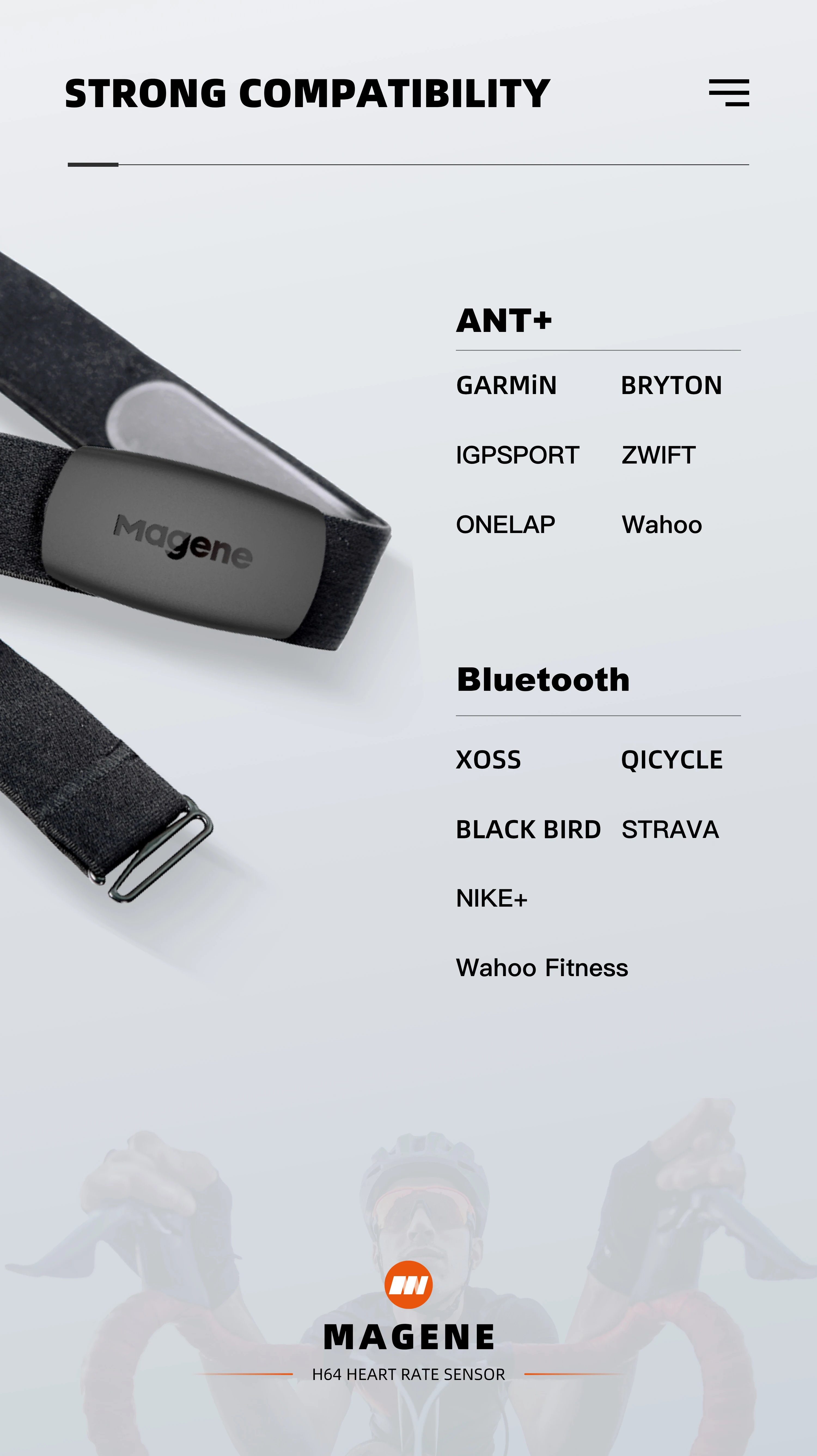 Монитор сердечного ритма Magene H64, двухрежимный ANT + Bluetooth датчик с нагрудным ремешком для велосипедного компьютера Wahoo Garmin Bryton XOSS