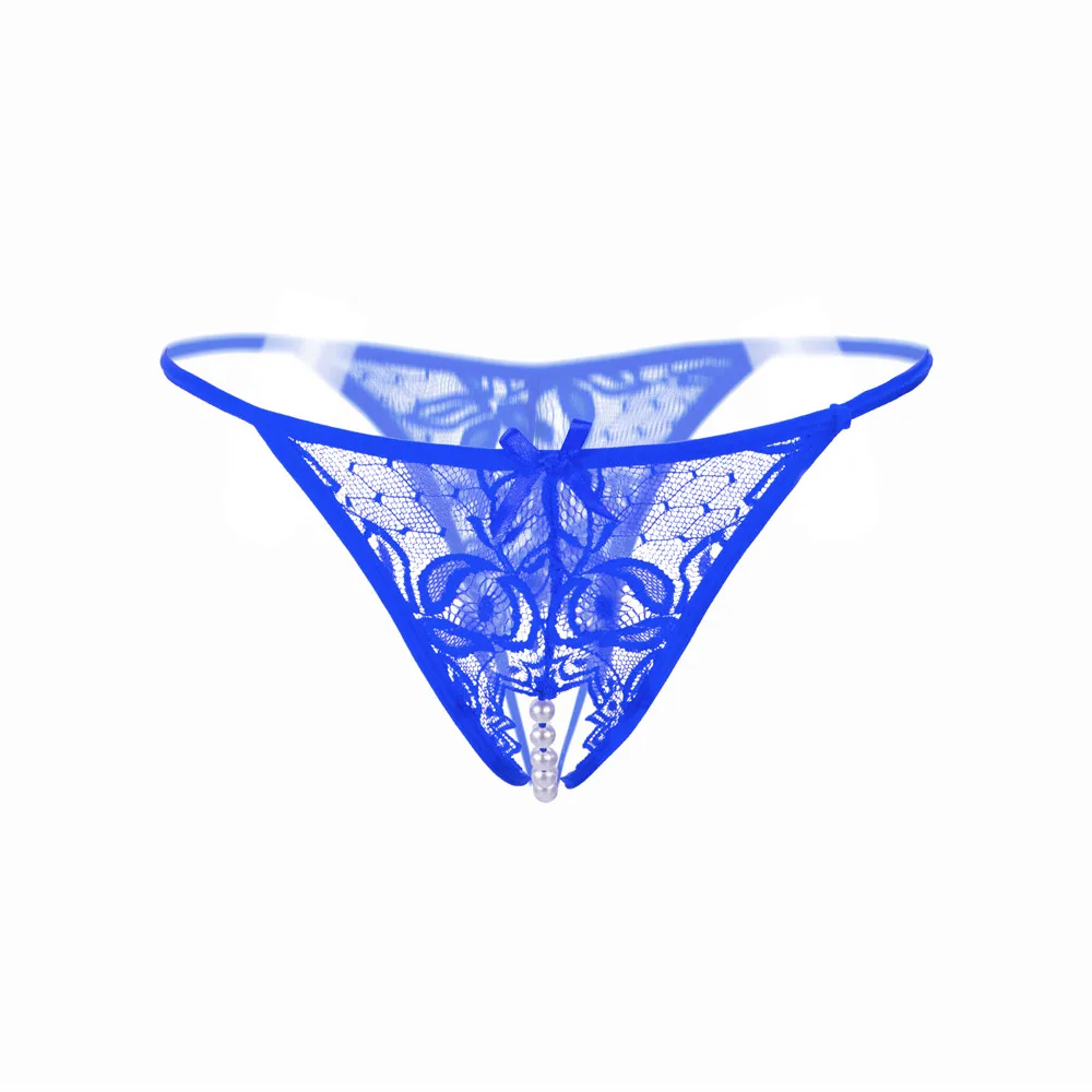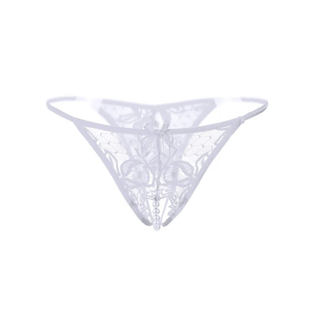 Женские кружевные трусики с вырезом, стринги с жемчугом, массажное нижнее белье