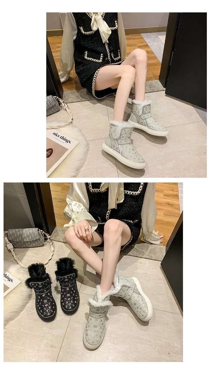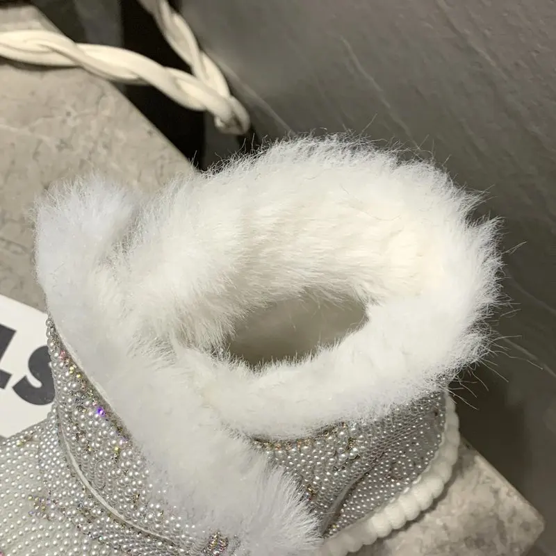 Короткие Плюшевые сохраняющие тепло зимние сапоги сексуальные страз...