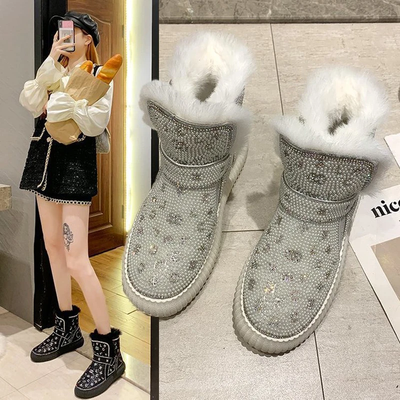 Новые зимние модные женские зимние ботинки с бусинами, удобные боти...