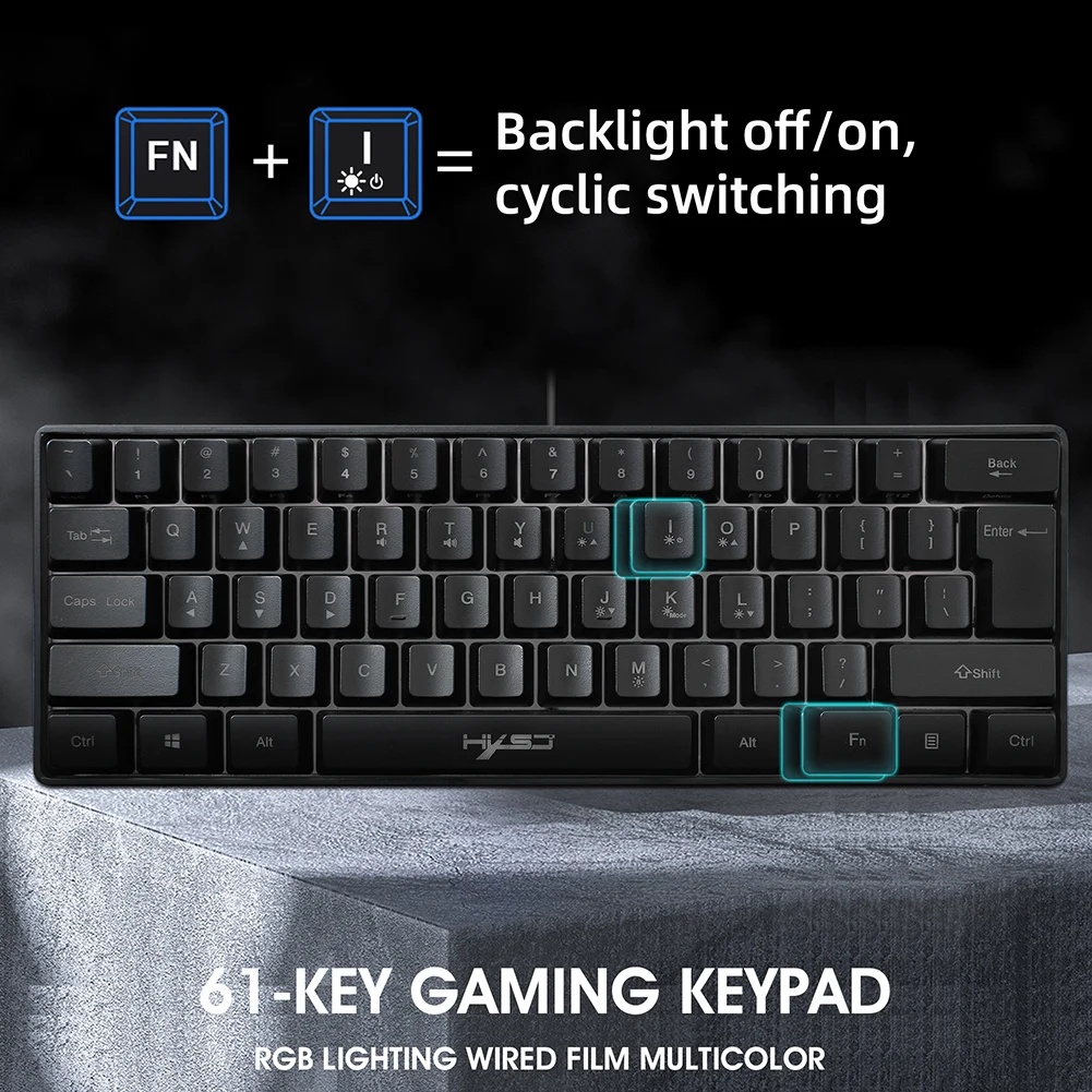 Проводная игровая клавиатура с регулируемой RGB-подсветкой, 61 клав...