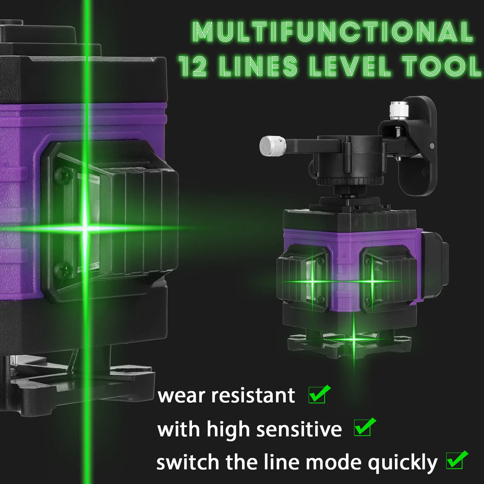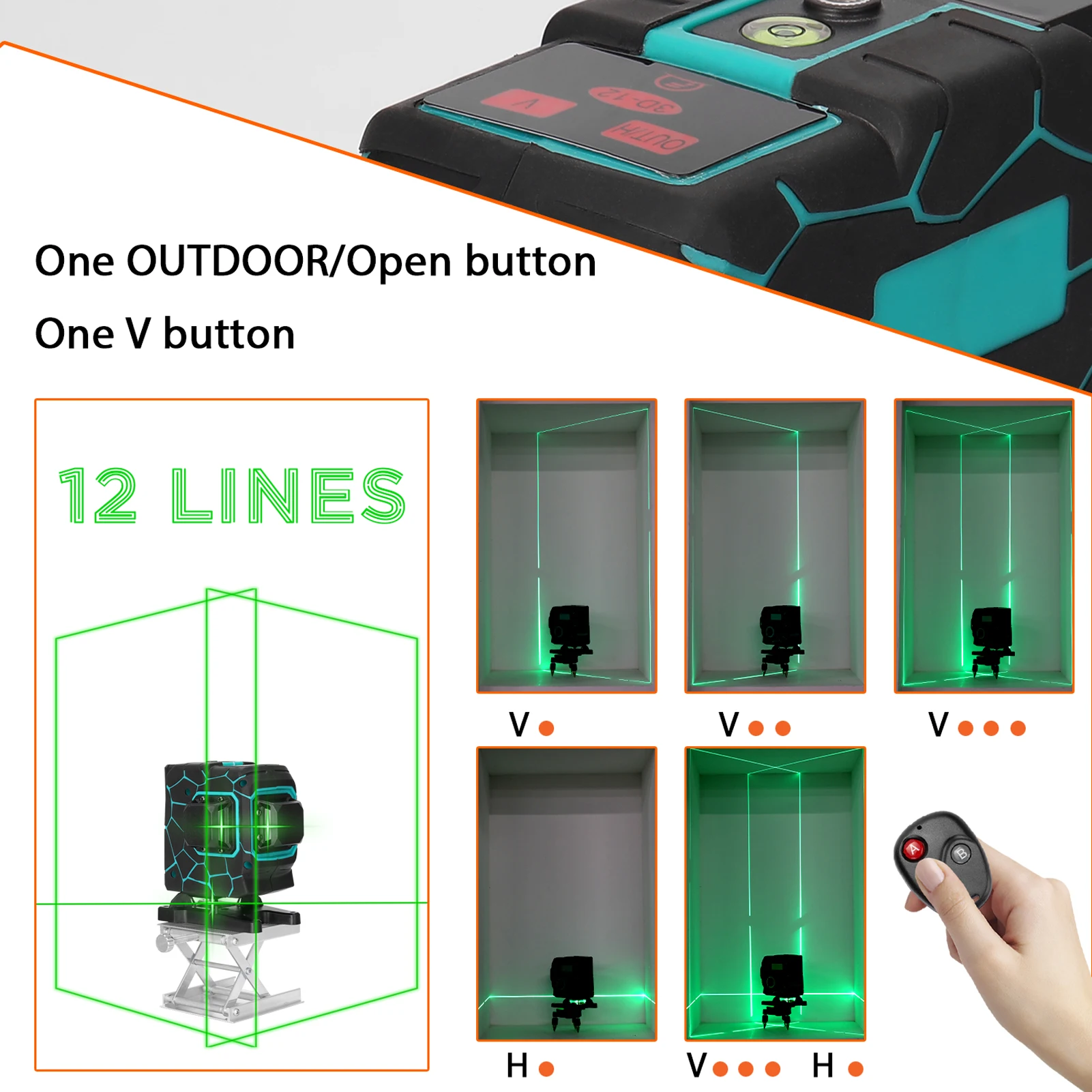 Выход 12 лазерных линий отдельно или одновременно для более точного позиционирования, с системой самонивелирования 3 °, гибкость и стабильность.