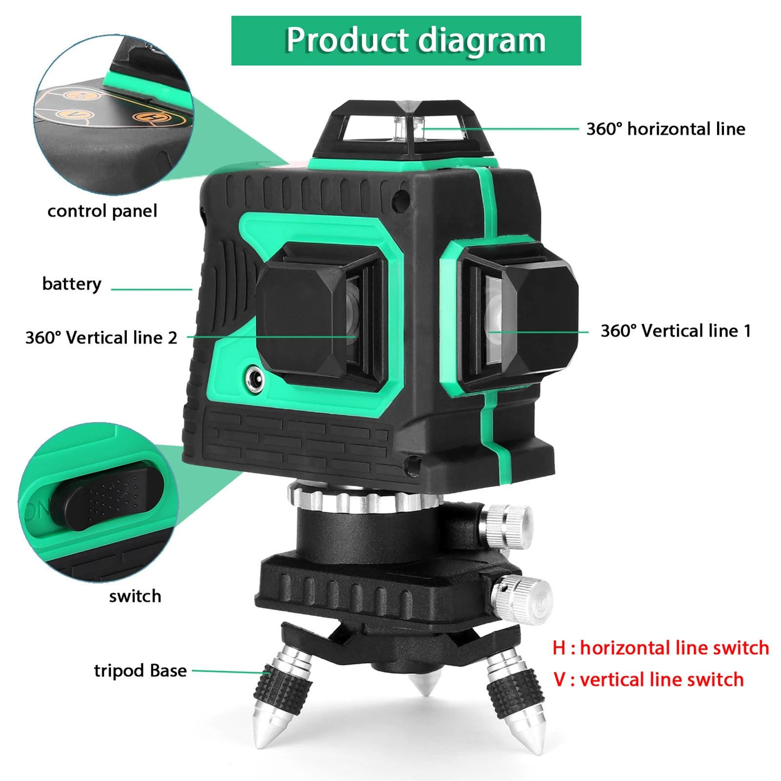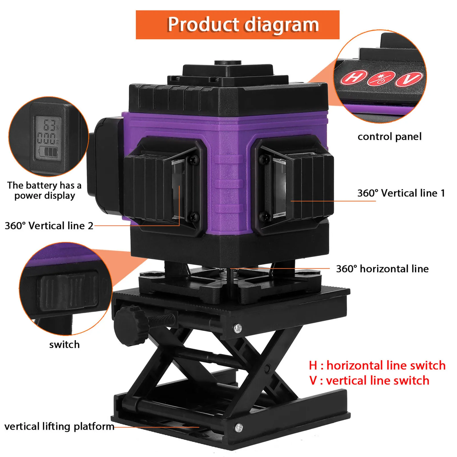 Оснащен функцией самостоятельной калибровки, ≤ 3 ° автоматическое выравнивание, но если угол превышает 3 °, лазерный светильник будет продолжать мигать, а также имеет звуковой сигнал, чтобы напомнить вам, чтобы сбросить их на ровную поверхность.