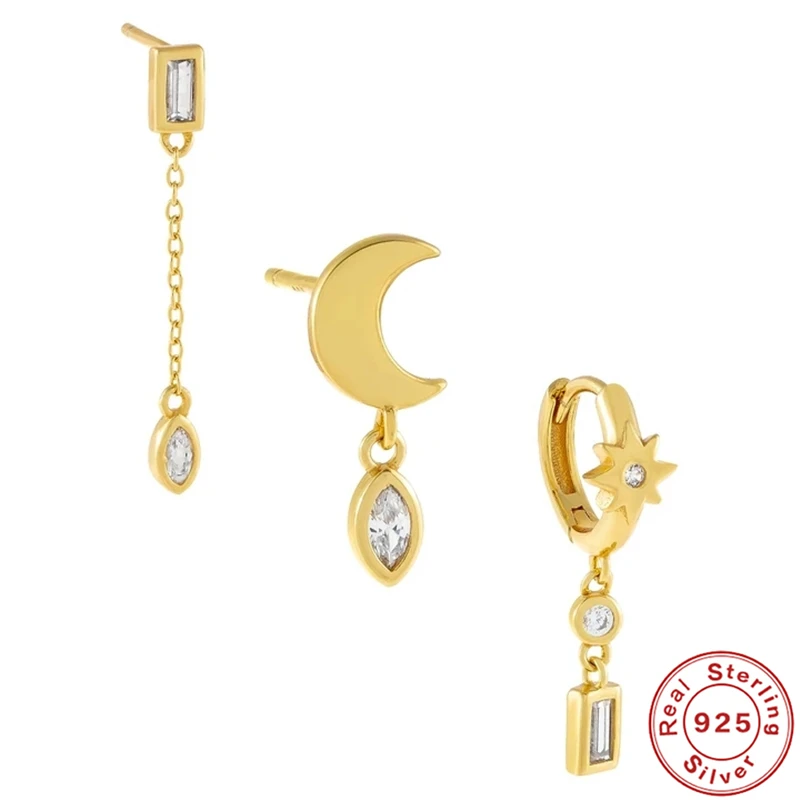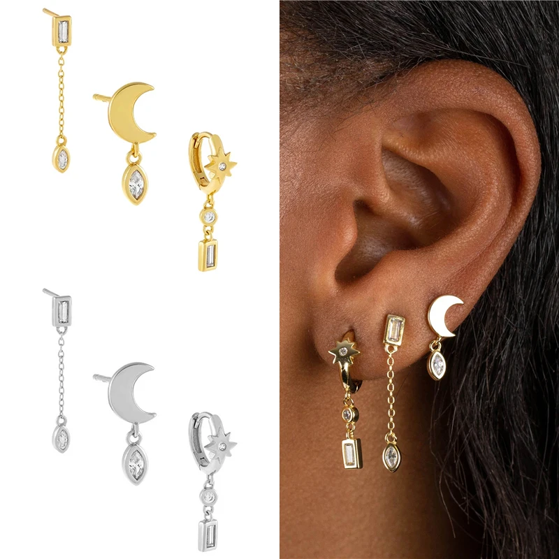 Морс код 3 шт.компл. 925 серебро Для женщин цепи серьги Huggie пирсинг уха Висячие серьги ювелирные изделия Букле Oreille Femme