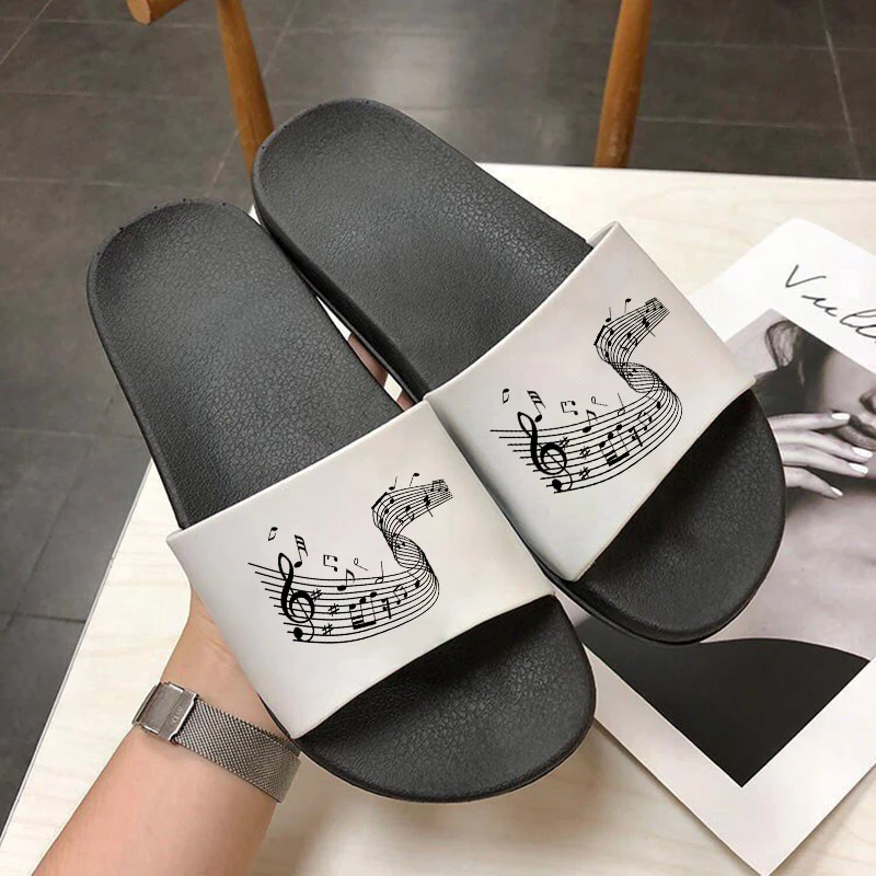 Сланцы женские пляжные, сандалии с музыкальным принтом, Нескользящие, для ванной и дома, летняя обувь