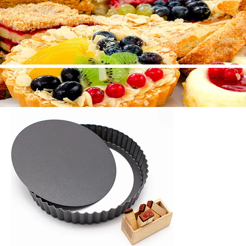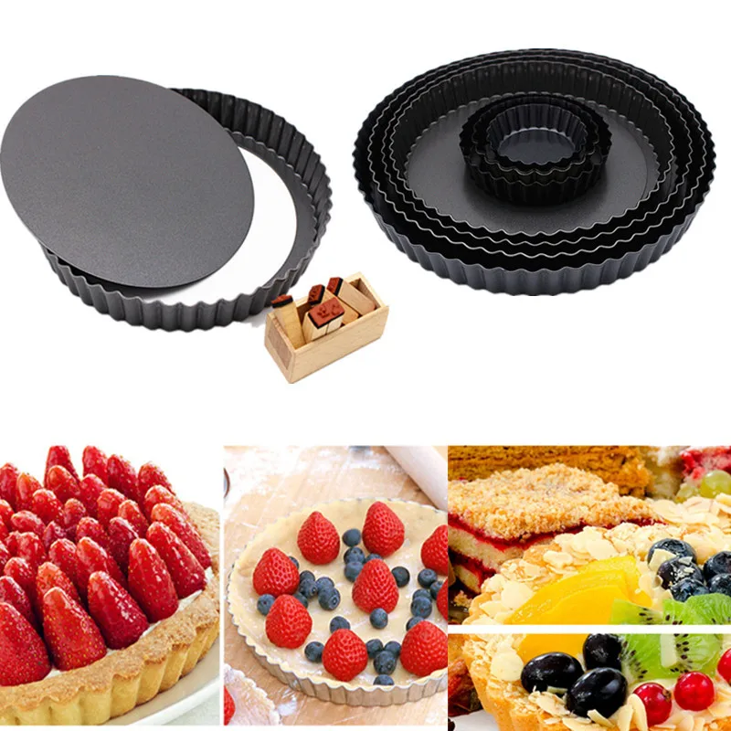 Круглая форма Flan для кастрюль, антипригарная форма для пирога, пиццы, тарелки, кекса, форма для торта, съемная сковорода для выпечки с широким дном, кухонные принадлежности для выпечки