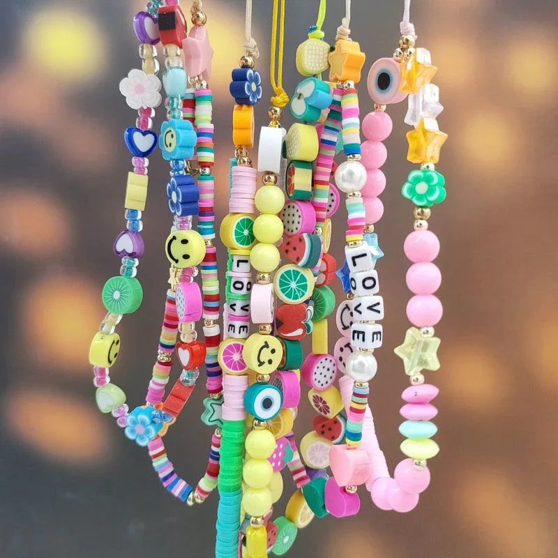 Новинка 2021, богемный ремешок для телефона, цветной ремешок с улыбкой и жемчугом, Мягкая Керамическая веревка для телефона, Женский висячий шнур