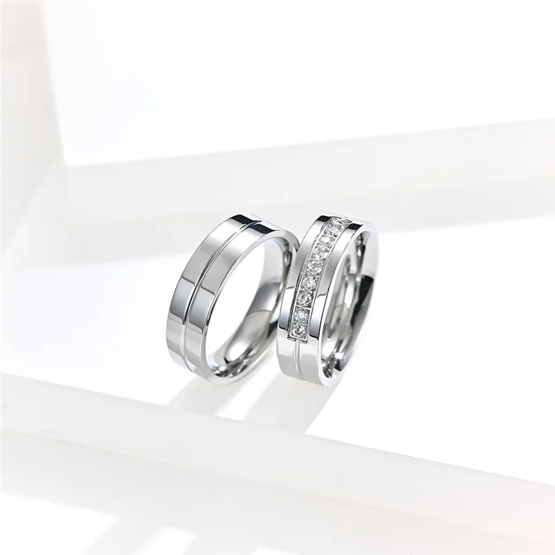 Серебряный Цвет парные кольца из нержавеющей стали для мужчин и женщин обручальные аксессуары, элегантные влюбленных Кольцо женские свадебные украшения сезона моды 2021