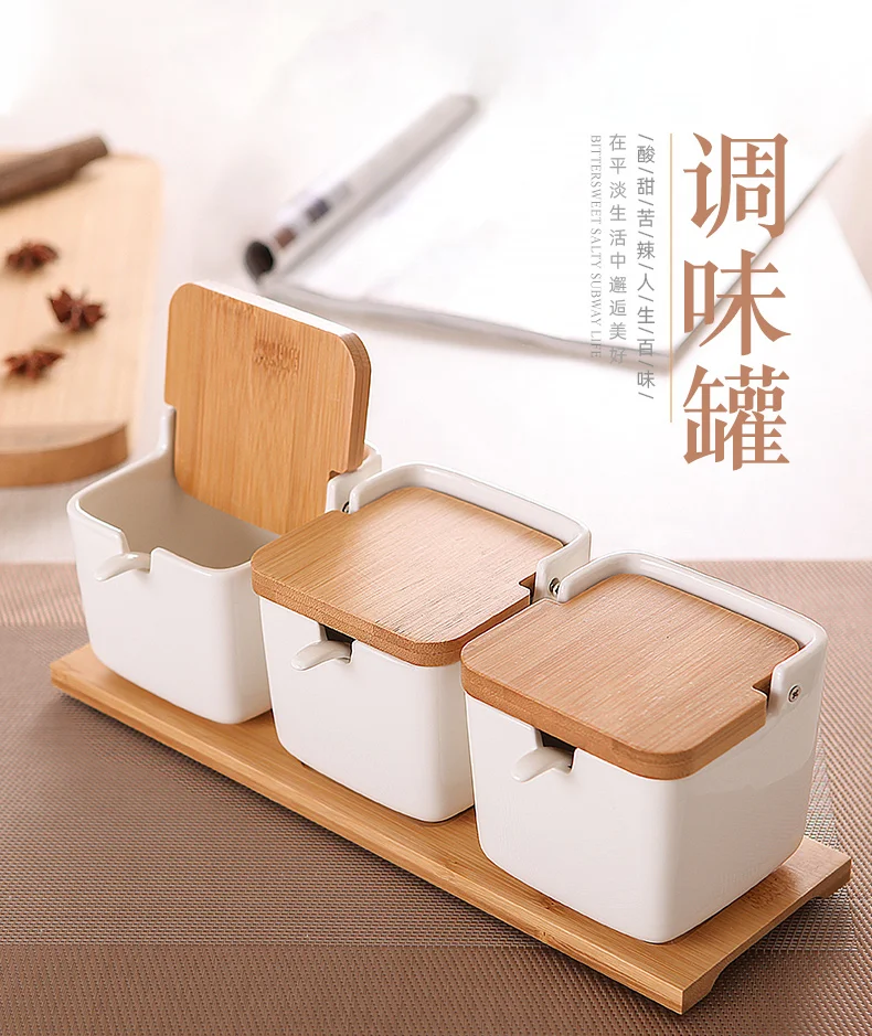 Кухонная ложка, фарфоровая шкатулка с бамбуковым покрытием, горшок ...