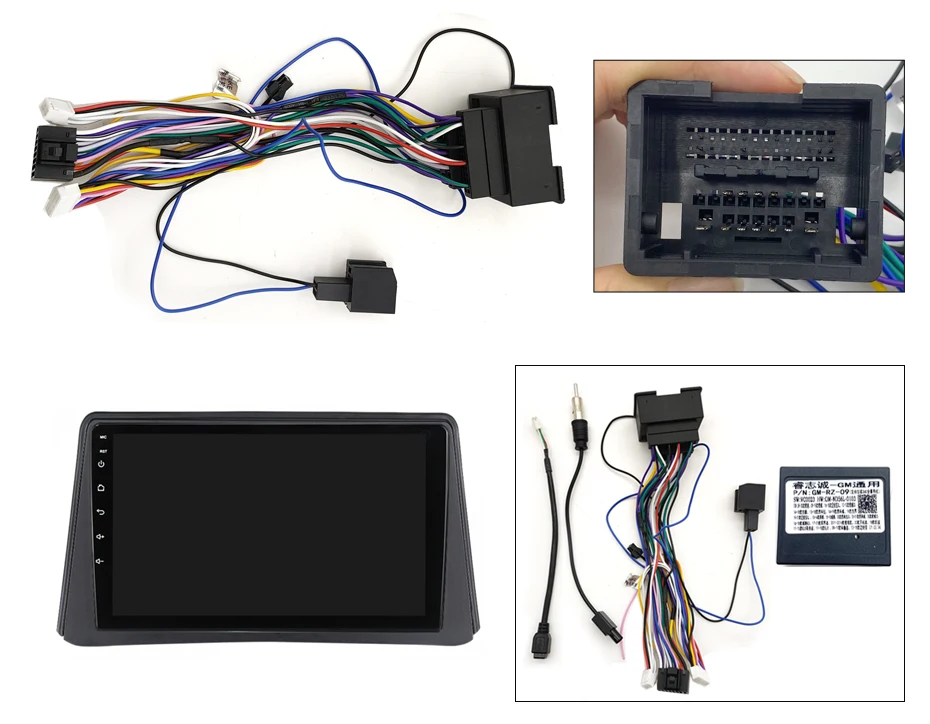 Один RCA кабель с внешним входом микрофона, один Реверсивный кабель камеры с WiFi и BT сигнальными кабелями, один GPS антенный кабель, два USB кабеля