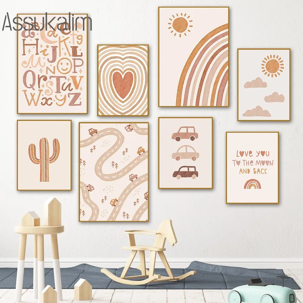 Настенные плакаты для детской комнаты, картины с алфавитом, солнце,...