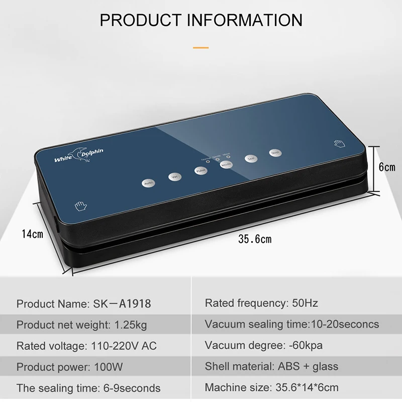 Лучший портативный пищевой вакуумный упаковщик White Dolphin с бесплатными пакетами, упаковочная машина, 10 шт.