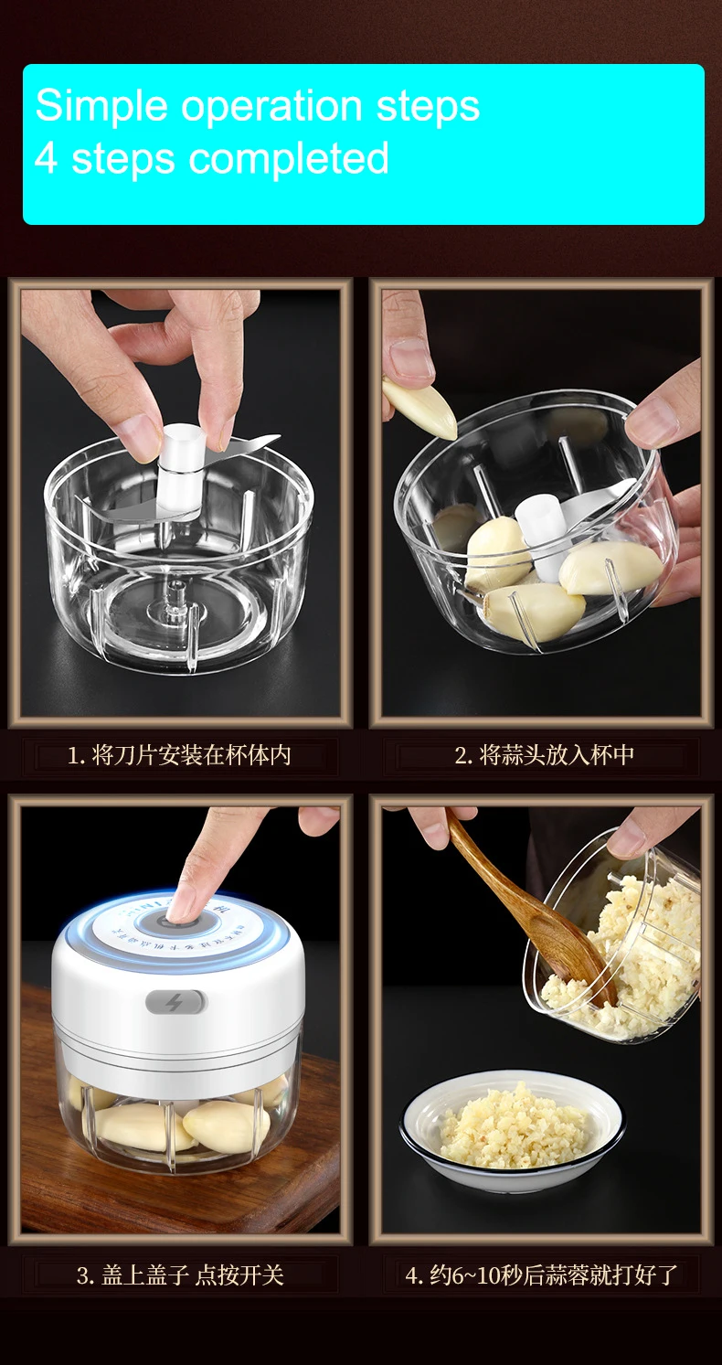 Электрическая чеснока давилка 100250 мл, прочный мини-измельчитель ...