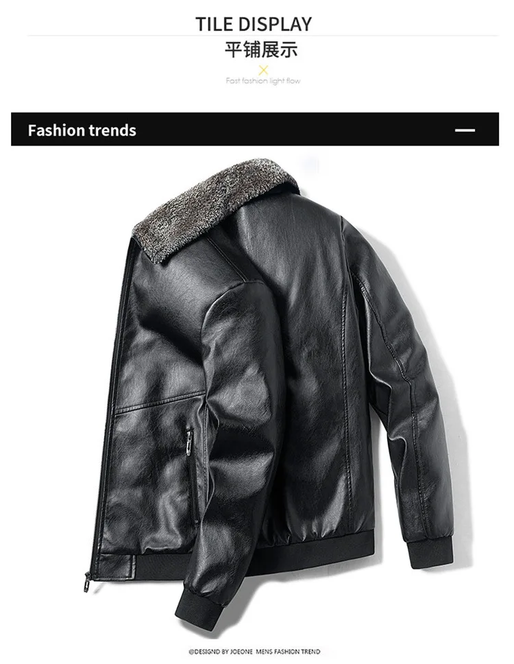 Мужская зимняя кожаная куртка с плюшевым воротником, пальто и куртк...