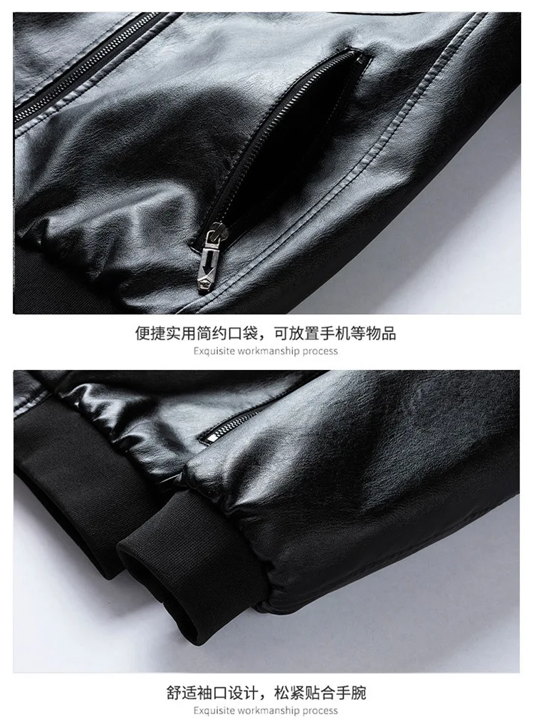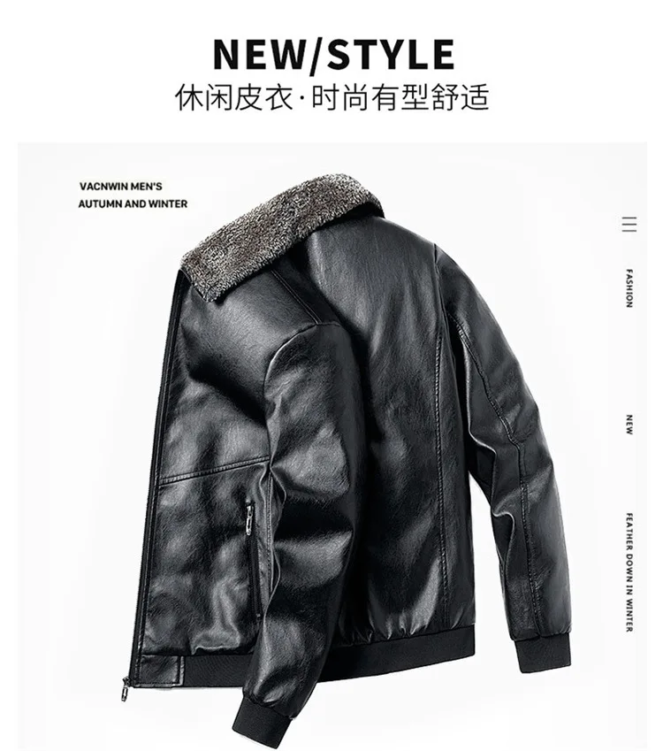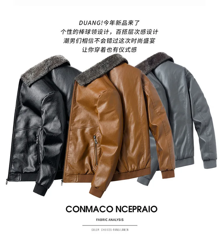 Кожаная куртка ANSZKTN, Мужская зимняя флисовая мотоциклетная куртк...