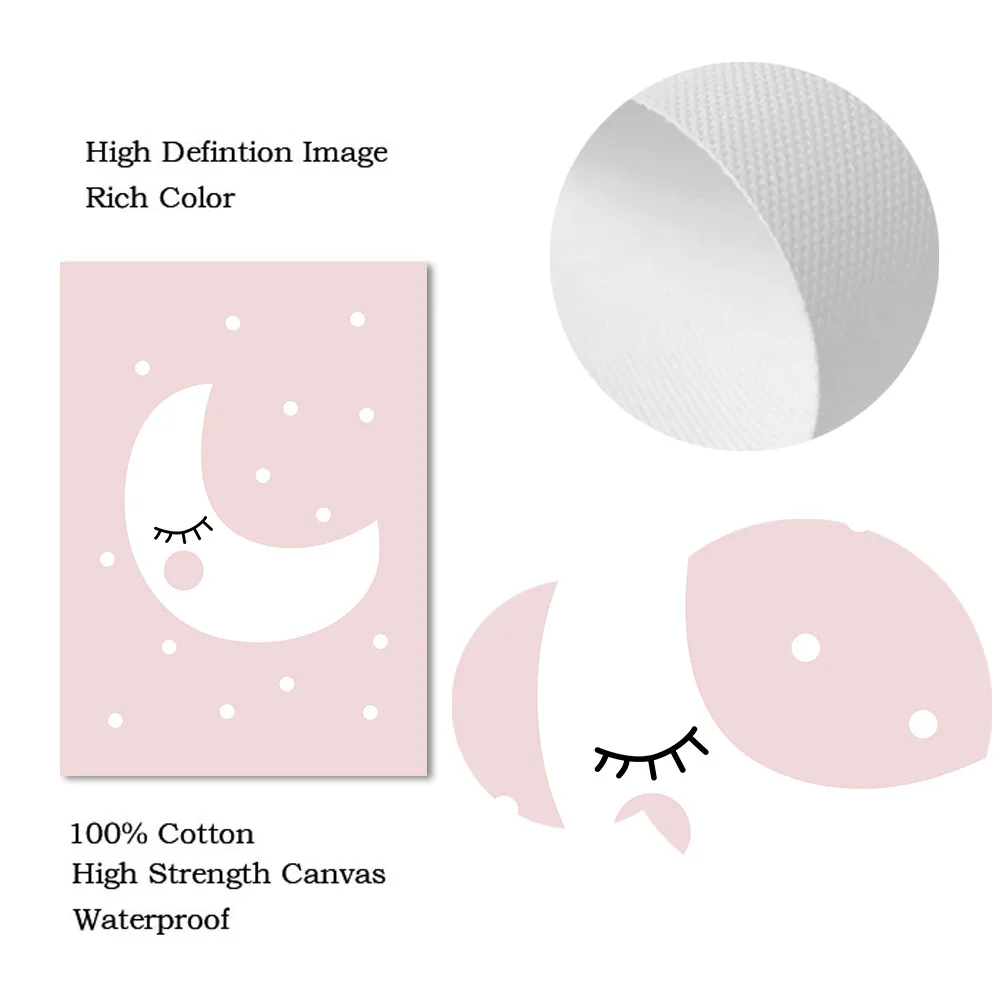 Настенная картина розовая Звезда, облако, холст, постеры для детской комнаты, печать Луны, плакат, Детские принты, настенные картины в скандинавском стиле, декор детской комнаты