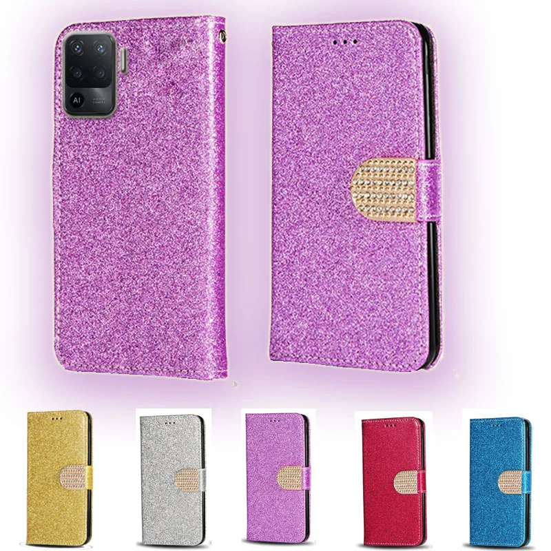 Роскошный блестящий флип-кошелек из искусственной кожи для Oppo Reno5 Reno 5 Lite