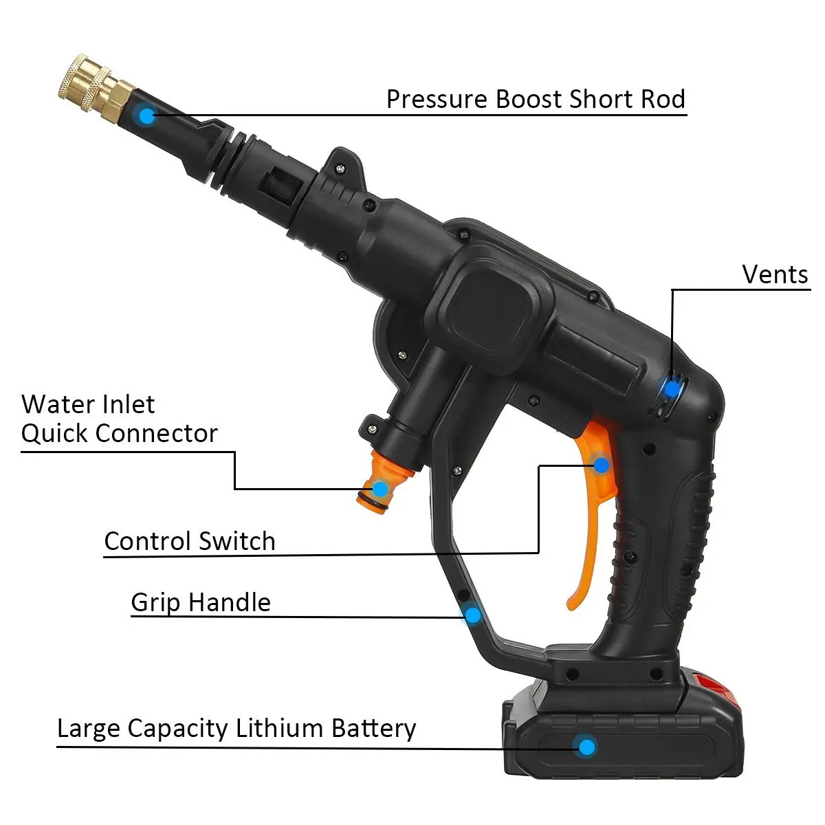 36 В Спецификация:Напряжение: 36 ВМатериал: инженерный пластикНоминальная мощность: 520 ВтПиковое давление: 30 барЕмкость аккумулятора: 5600 мАчНагрузке: 2,6 л/минВремя выдержки: 40 ~ 90 минутДлина выходной трубы: 5 м