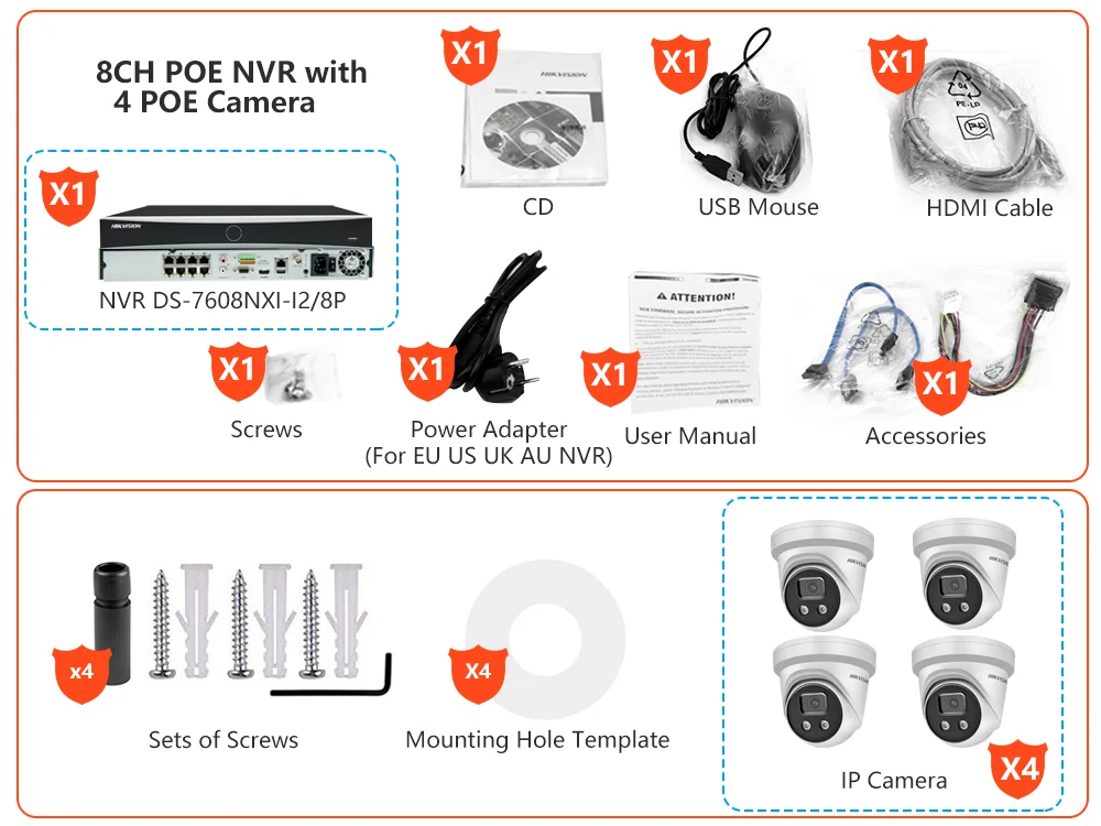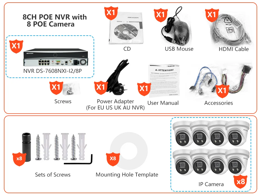 1. 1x Hikvision оригинальный NVR DS-7608NXI-I2/8 P/S с оригинальной коробкой.