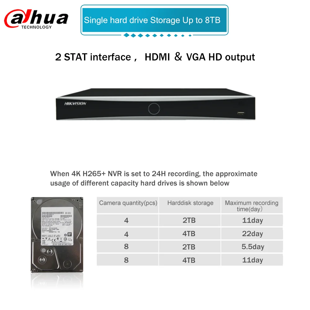 (2 SATA single поддерживает до 8 ТБ, что позволяет лучше записывать и воспроизводить ситуацию во время мониторинга, чтобы защитить вашу безопасность)