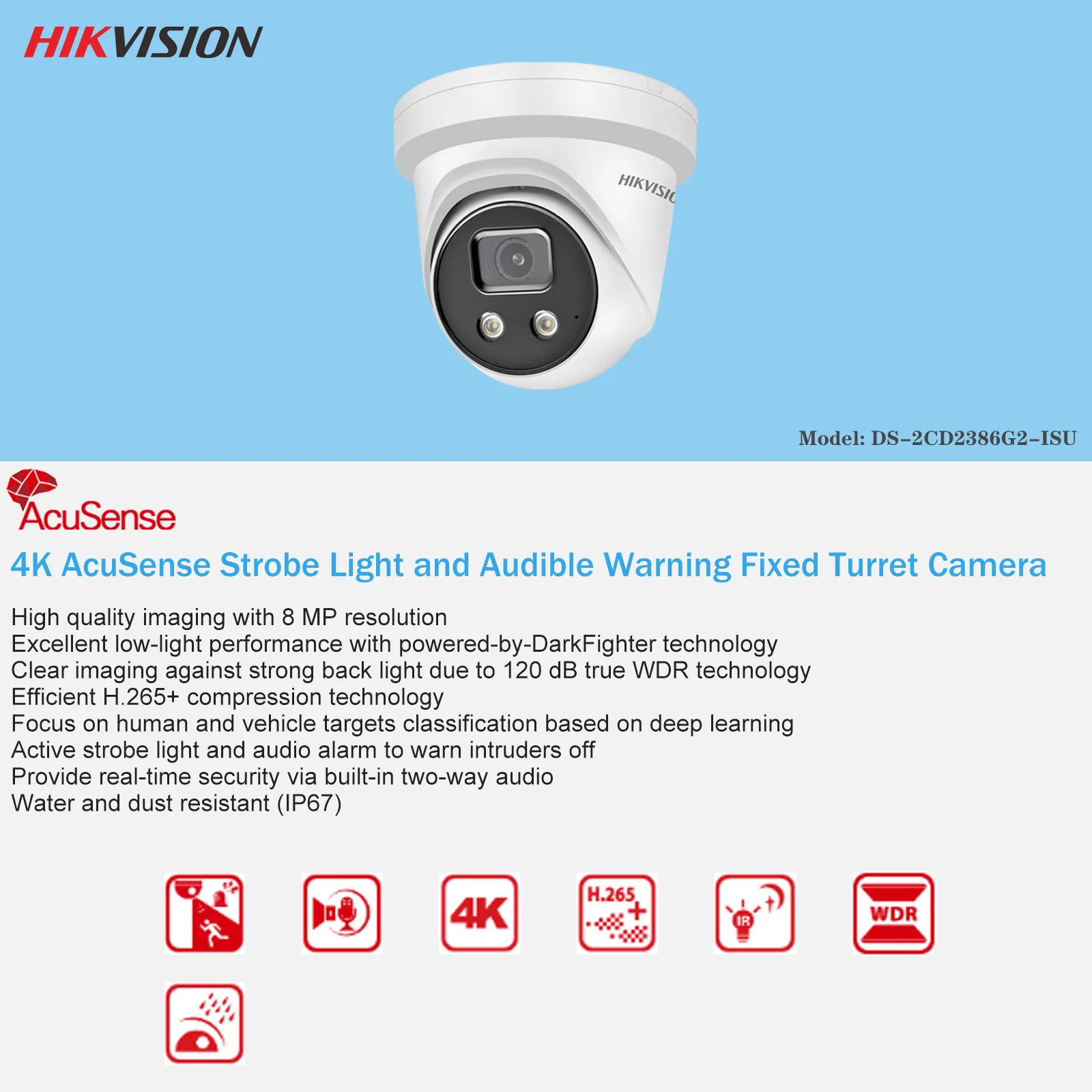 1.Hikvision 8MP ip-камера 4K AcuSense DS-2CD2386G2-ISU/SL 2,8 мм или 4 мм объектив* 4/* 8
