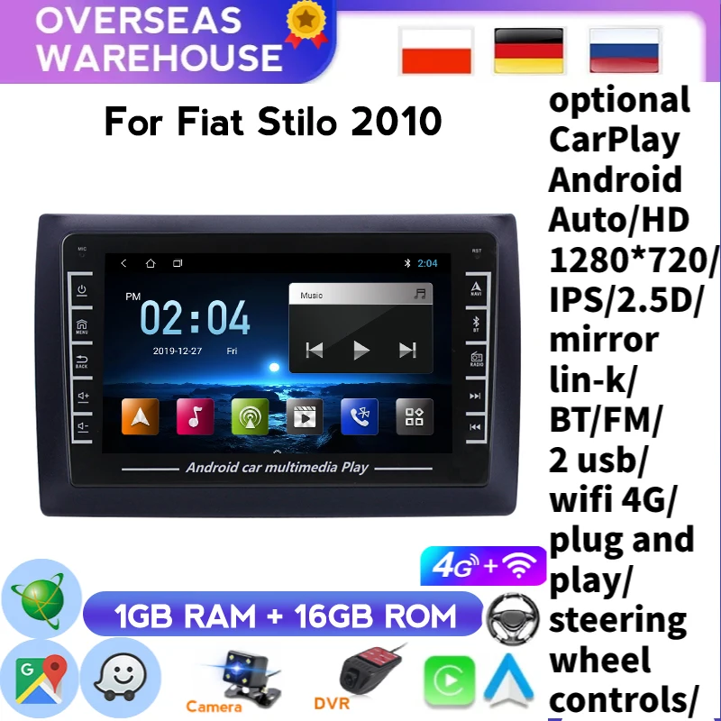 Автомобильный мультимедийный проигрыватель CARPLAY, Android 8,1, 8 дюймов, 2din, HD сенсорный экран, GPS, аудио, стерео для Fiat Stilo 2010, с BT, Wi-Fi, BT