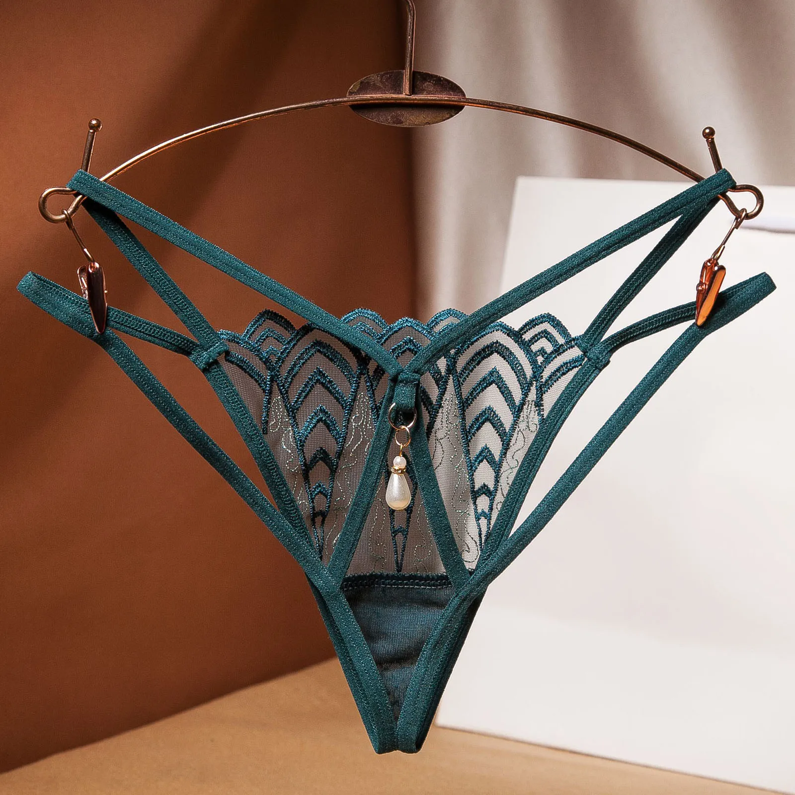 Женские сексуальные трусики с жемчугом прозрачные кружевные трусики, женское нижнее белье пикантные кружевные стринги, порно белье, стринги