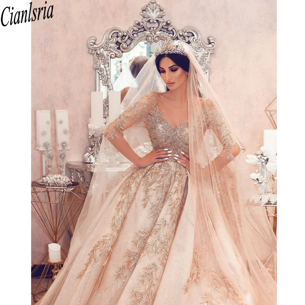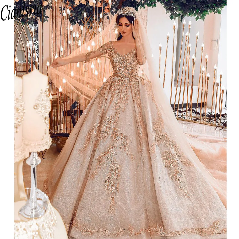Роскошные арабские Свадебные платья цвета шампанского, бальное плат...