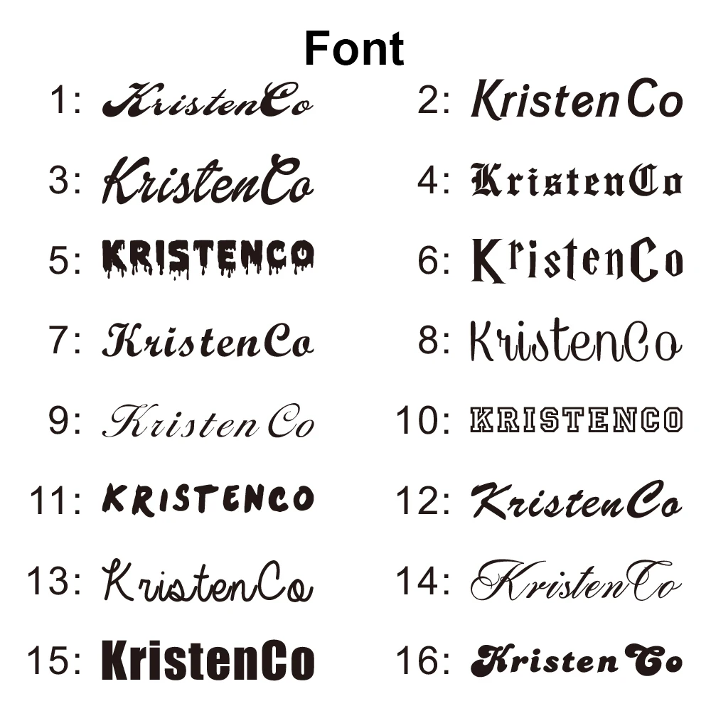 1. Дорогой, когда вы покупаете ювелирные изделия, вы должны оставить сообщение после заказа или отправить мне имя и шрифт, который вы хотите настроить (например, имя:Алиса, шрифт 2), Если вы только сообщите нам имя, но не имеете шрифт, мы подгоняем шрифт для вас в соответствии сШрифт по умолчанию. Если вы даже не сообщите нам свое имя, мы отправим товар по умолчанию. Когда вы думаете об этом, не волнуйтесь, вы все еще можете связаться с нами, и мы будем продолжать настраивать его для вас.