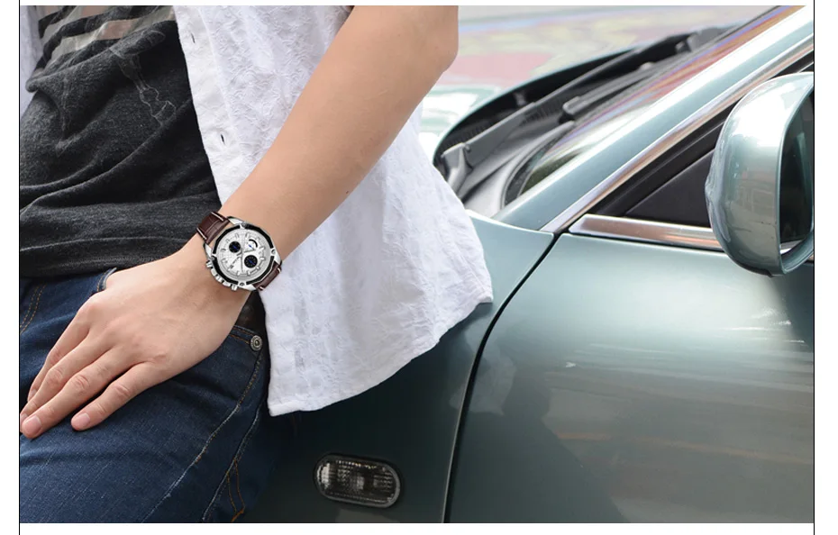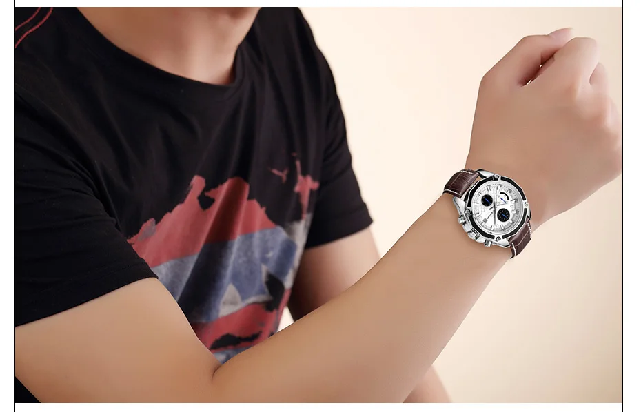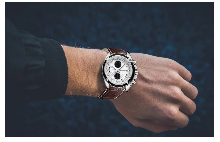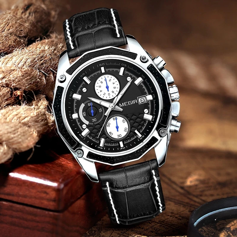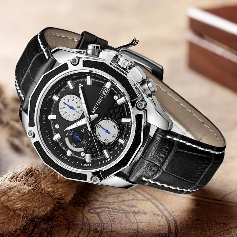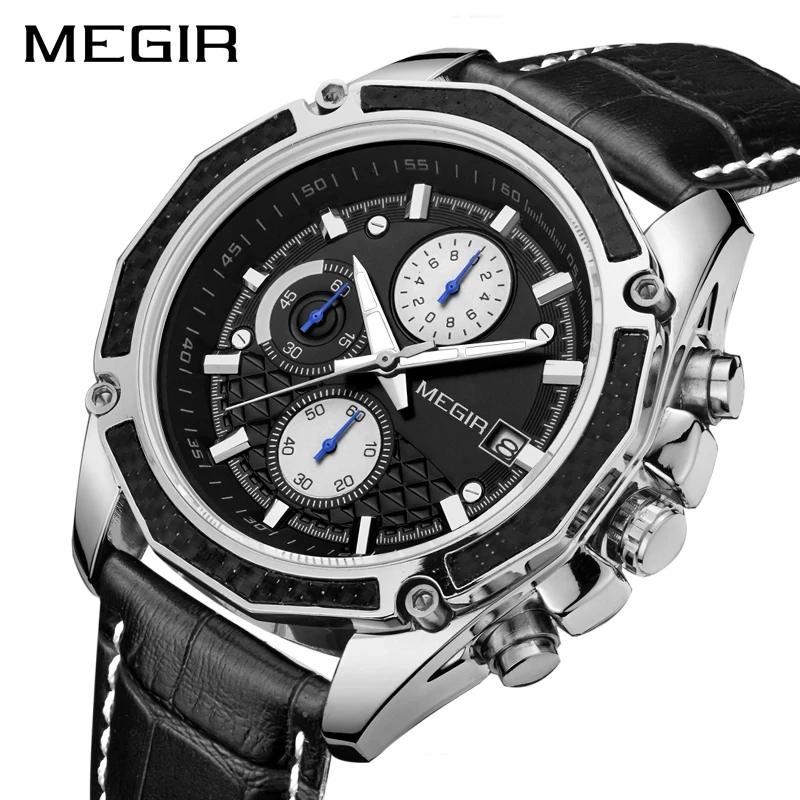 Люксовые часы от бренда MEGIR 2021 новые кожаные классические повседневные спортивные часы, многофункциональные часы с хронографом световым излучением, кварцевые часы Relogio Masculino 2015 г