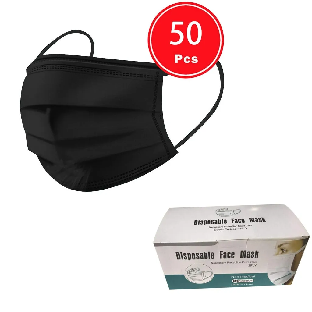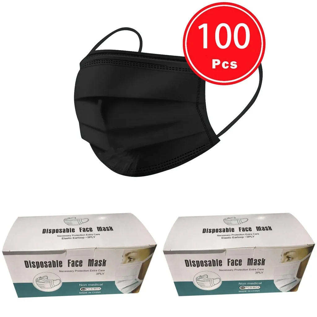 Маска для лица, черная, одноразовая, с 3-слойным фильтром, для Хэллоуина, 100, повязка на глаза для косплея50 шт.