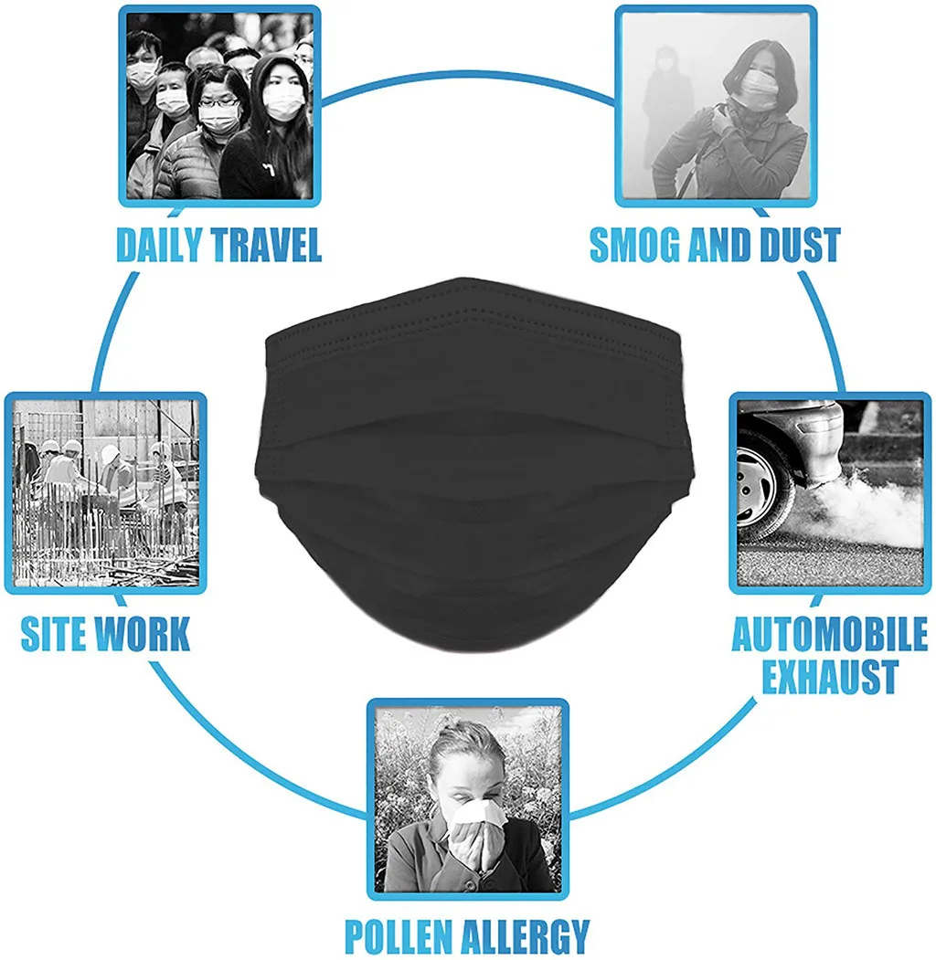 10-600 шт. Одноразовые черные маски лица 3 слоя PLY-фильтр защитная...