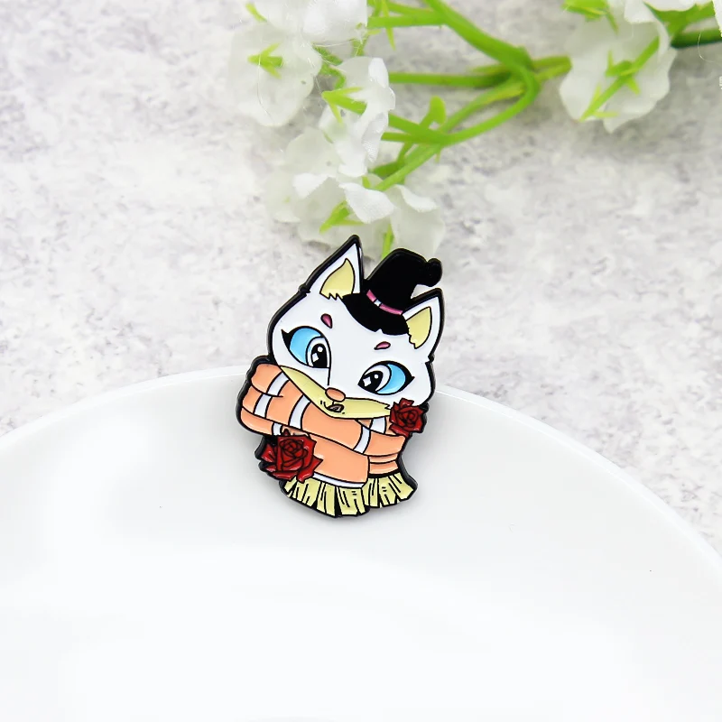 Кошка, лиса, крыса, курица, насекомое, божья коровка, броши с розам...