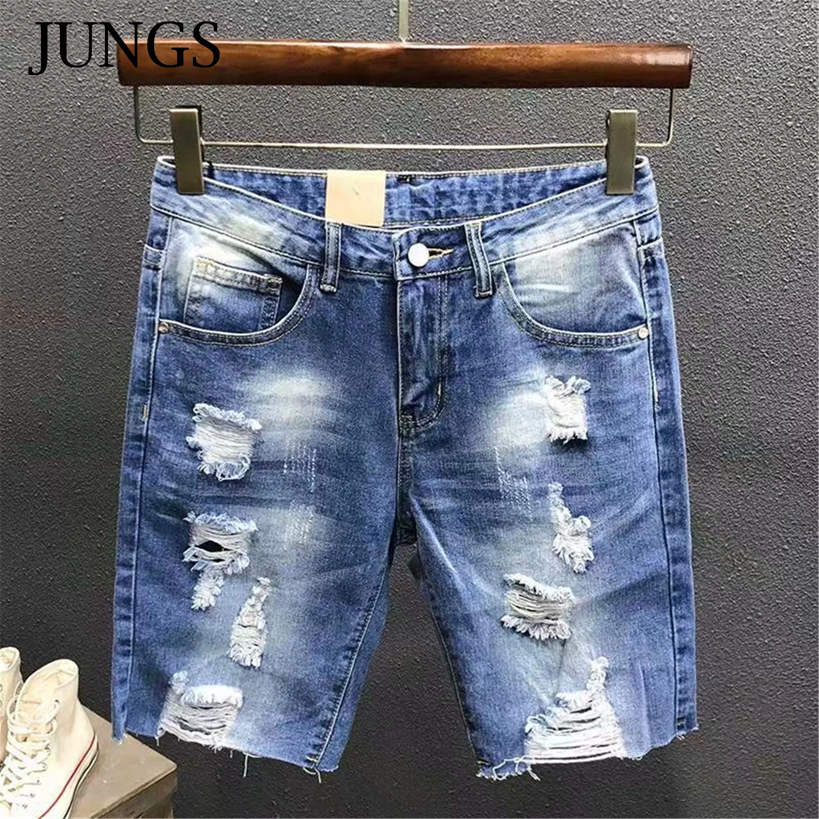 Джинсы мужские быстросохнущие, классические короткие штаны из денима, дышащие, с эластичным поясом, летние
