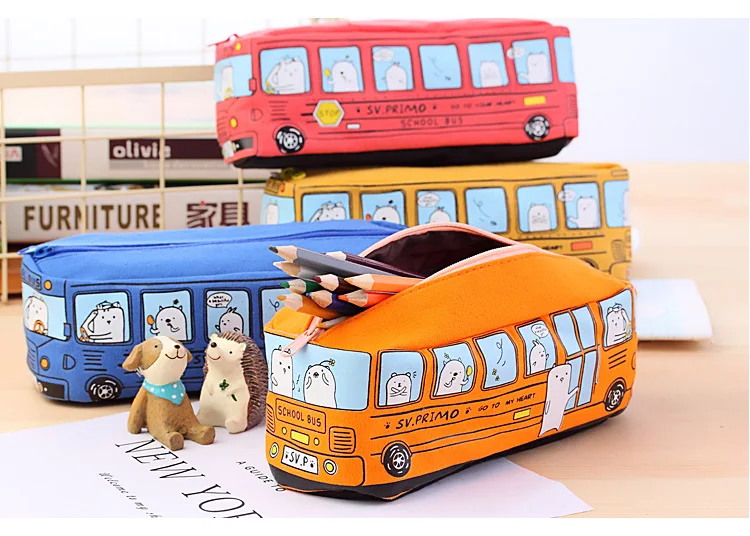 1 @ # Большой Вместительный чехол для карандашей с школьным автобус...
