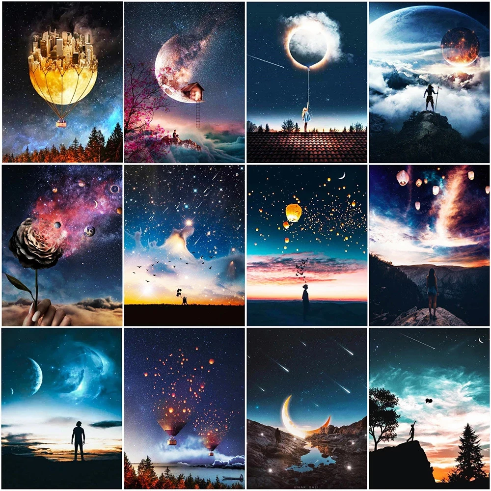 Красочная алмазная живопись AB, вышивка вселенной, Алмазная мозаика, ночная полноразмерная картина, пейзаж, украшение для дома, искусство