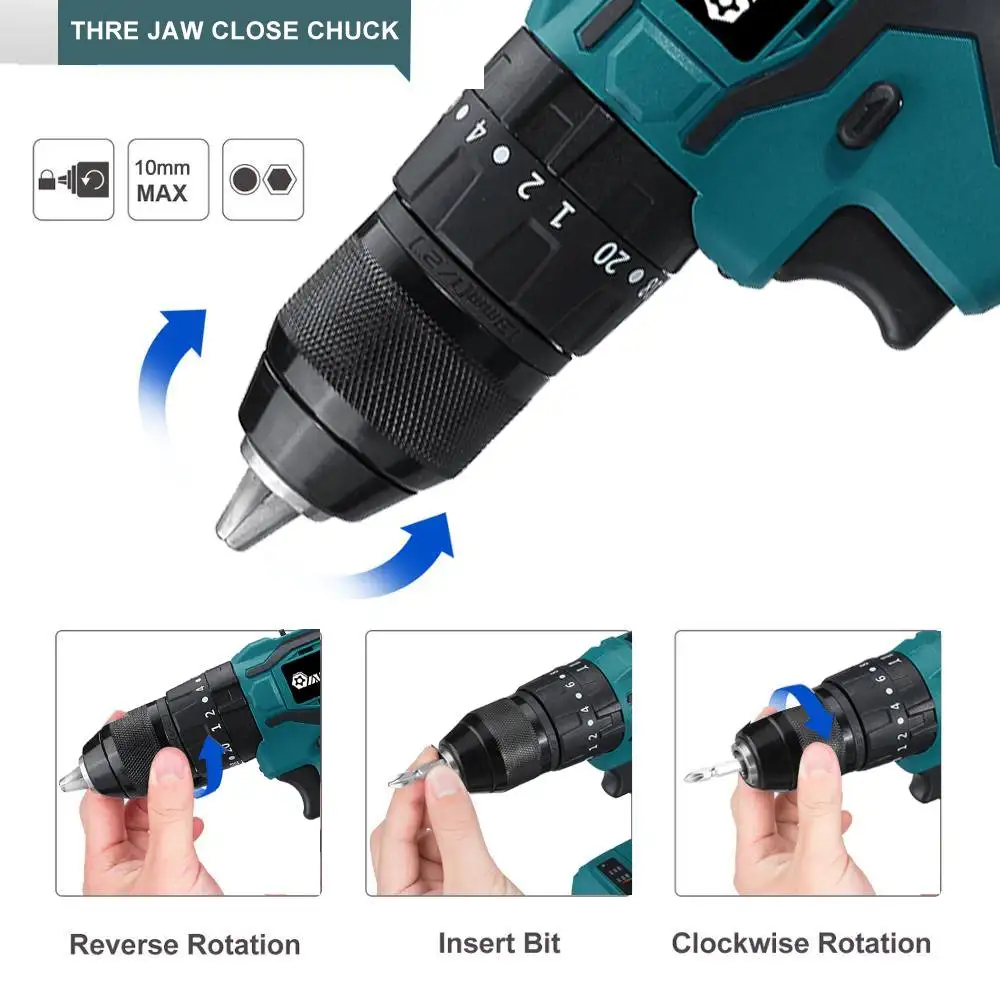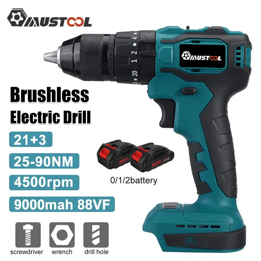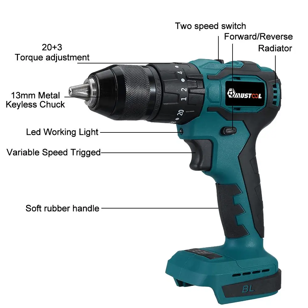 Характеристики:Название: бесщеточная дрельКрутящий момент: 25-90NMКрутящий момент: 20 + 3 регулировки крутящего моментаРазмер патрона: 13 ммРазмер: 18x2 0 см/7.1x7.9 дюймовБез скорости нагрузки: 4500 об/минЕмкость аккумулятора: 9000 мАчБатарея: 88VFРазмер патрона: 0,5 " (13 мм)Вилка (опция): вилка стандарта ЕС/СШАЦвет: синий