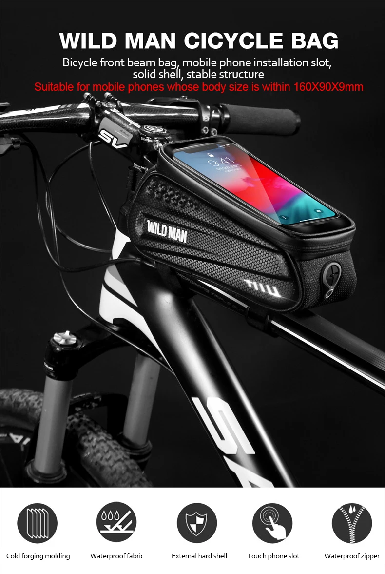 Сумка на переднюю раму велосипеда WILD MAN, водонепроницаемая вмест...