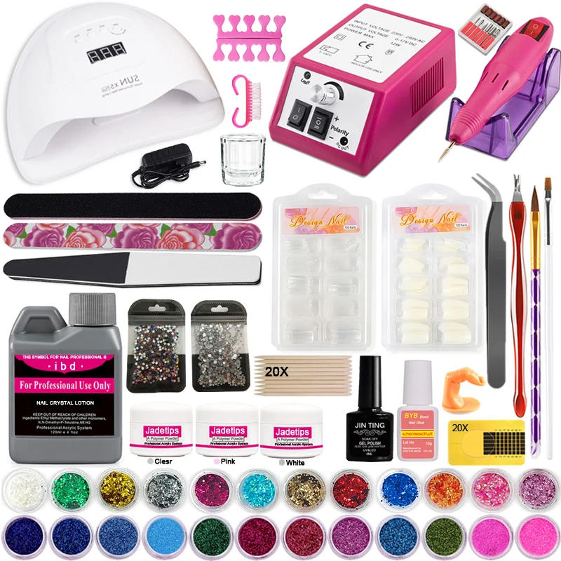 Профессиональный акриловый набор с фрезером, аппарат для акрилового маникюра, жидкий клей для ногтей, блестящий порошок, набор инструментов для нейл-арта, УФ-лампа для ногтей, аппарат для ногтей