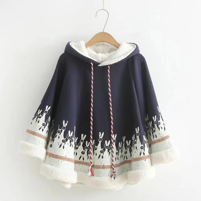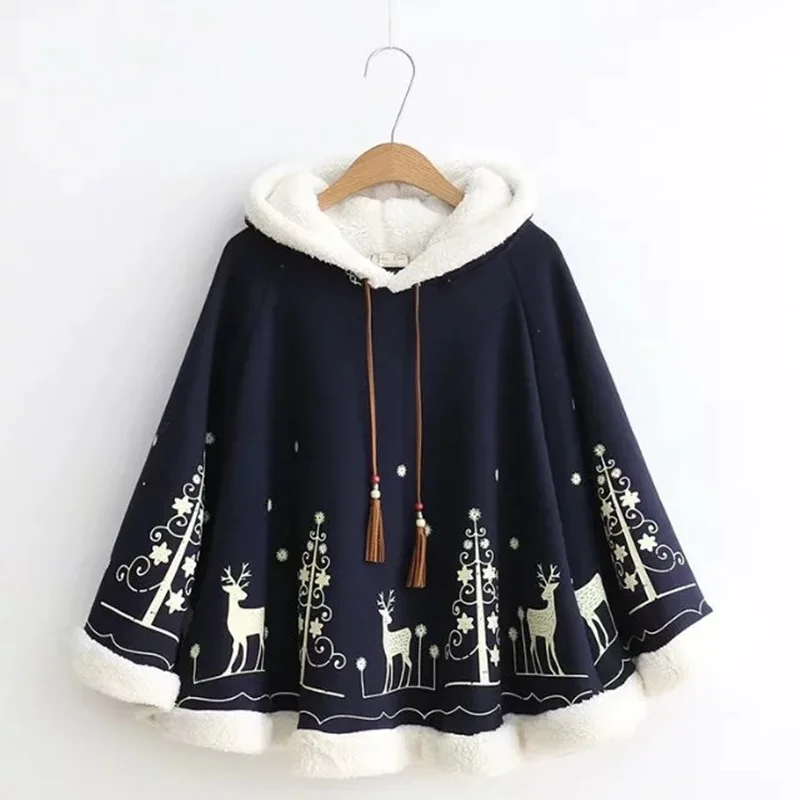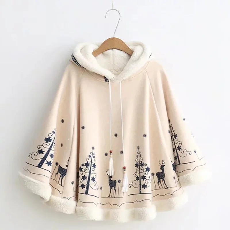 Япония плащ в стиле Лолиты в стиле Харадзюку с капюшоном плащ японские злой Кот в виде рождественского оленя накидка флисовая Свободный пуловер с рукавами летучая мышь, куртка с капюшоном