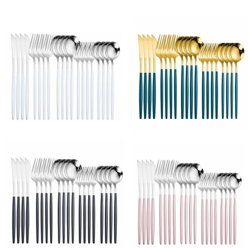 Розовый серебряные столовые приборы комплект Нержавеющаясталь столовые приборы Кухня посуда набор столовой посуды вилки Западной Ножи Ложки Набор столовых приборов 20 шт.